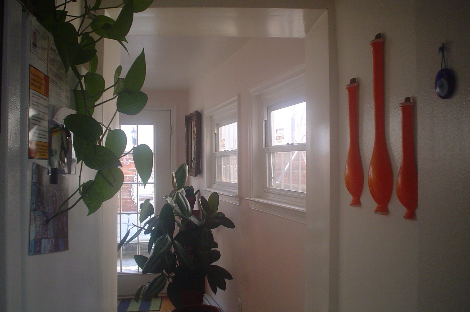 This picture is of the wall opposite, also next to the window. That is my rubber plant peeking out from the window. I planted one stalk from our bigger tree one year ago and it has already grown into a tall tree.