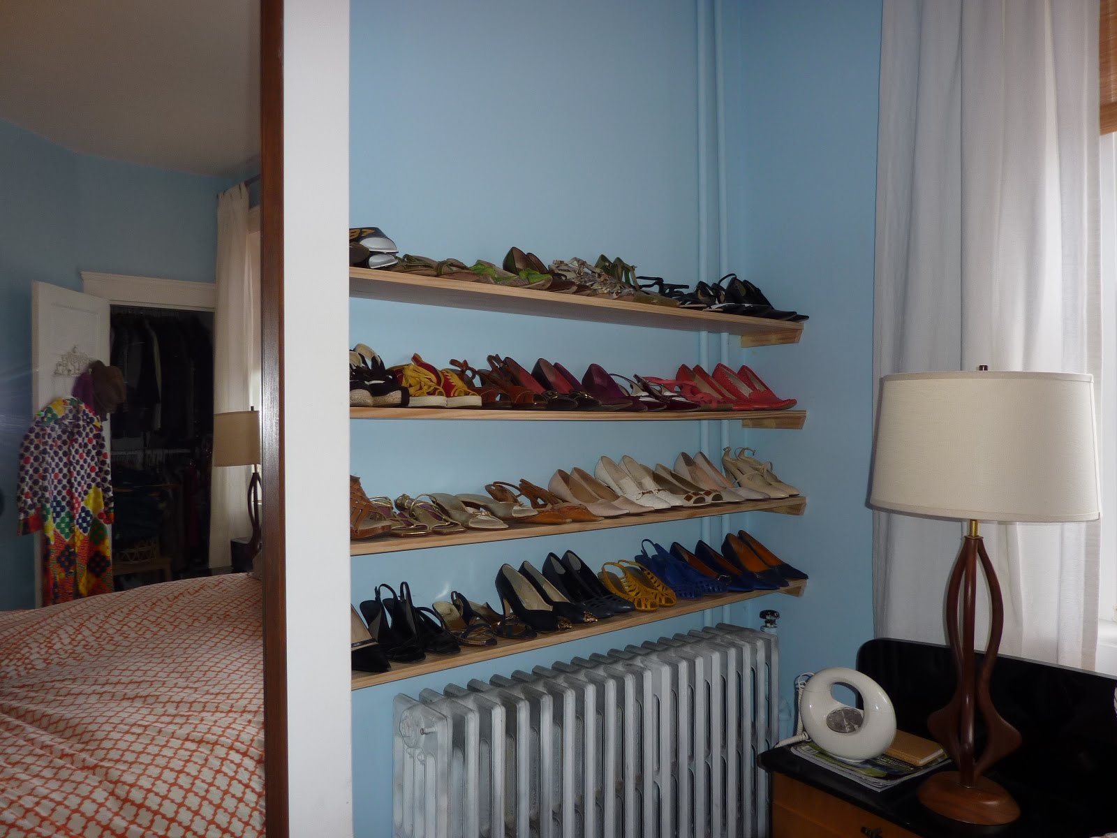 It took a lot of time to align the shelves (everything in our house is slightly crooked) and to decide what to anchor the shelves on. Most of our walls are plaster but this wall is drywall to it look a lot of time for us to decide whether we wanted to attach the shelves on just drywall or if we wanted to find the wood studs. We ended up attaching one side of the shelves to the wood studs and the other side was anchored with drywall sinkers. It took a lot longer than we anticipated but it is almost done. More pictures to follow.