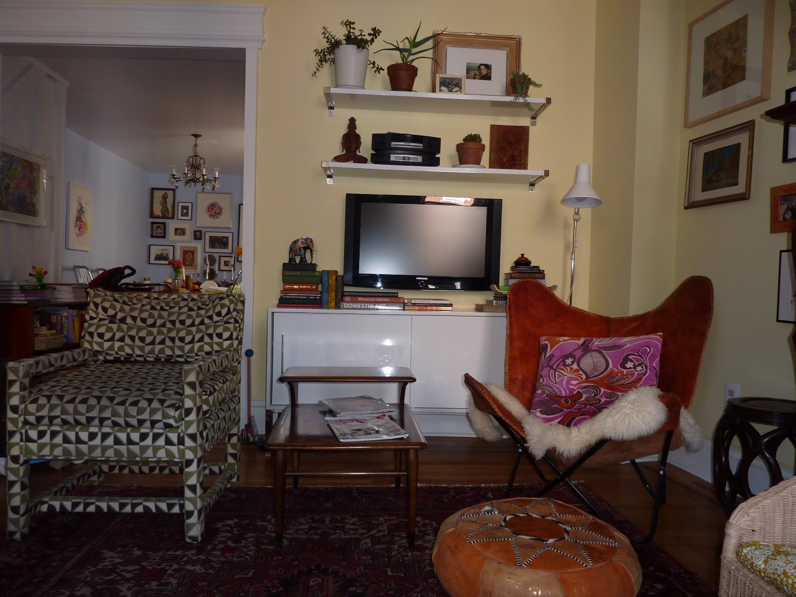 After having the television on the third floor (in what is now the office room) we finally decided that we need the TV on the main floor. Neither Scott nor I watch a lot of television but we love watching movies. So we decided to move it downstairs mainly because we really want the living room to be the room that we spend most of our time in. Our biggest challenge is incorporating the TV into the rest of the living room and making is sort of blend in.