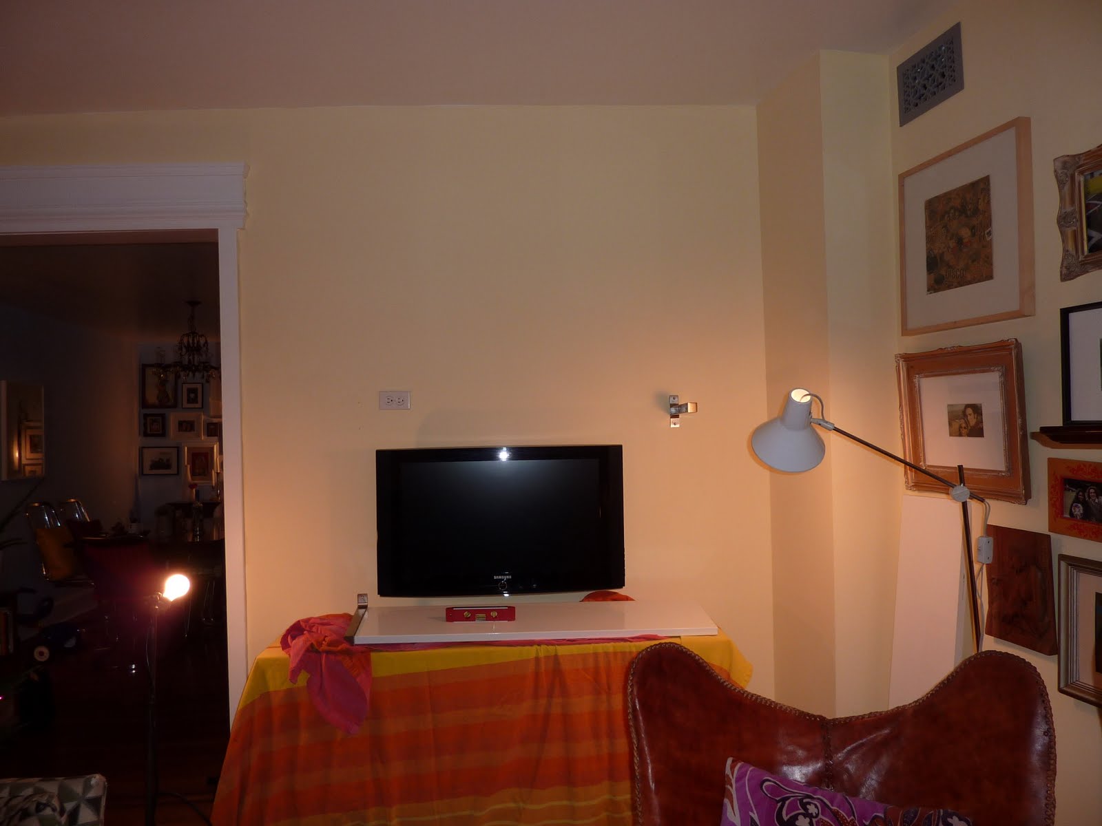 We decided on installing two shelves over the TV to put our CD player on. The main reason for this is that We have a Bose CD player (best purchase ever) and it just sounds better when it is higher. Also we needed it to be away from Kiran’s reach because he loves shoving CD’s into the CD slots.