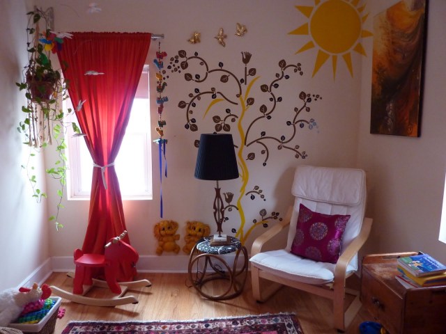The Ekas shade cost $13. It works perfectly with the lamp and it looks great in Kiran’s room.