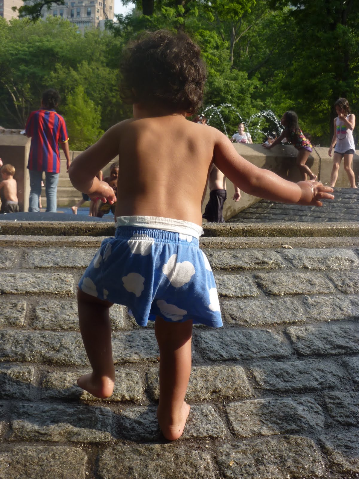 I can’t help but compare how much my life has changed. Before having Kiran, Scott and I would have probably spent the day scouring thrift stores, flea markets and antique shops for clothes, furniture and other random things. Then we would have showered and gotten all dressed up for a night of diner, drinks and dancing. Now we spend our days in NYC jumping, running and getting wet in Central Park!