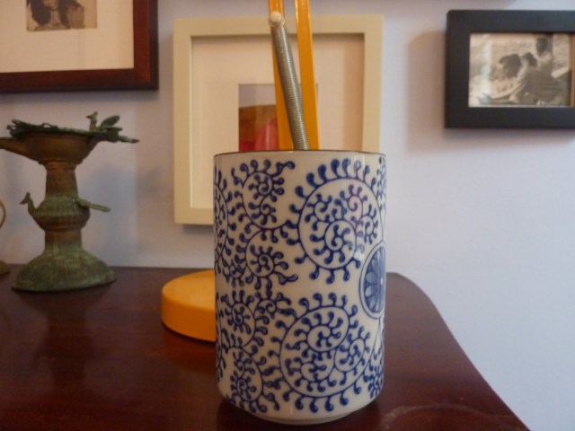 I wasn’t sure what I would I would do with this cup since I am not a big fan of cups without handles. This cup however turned out to be the perfect size to hold pencils on my desk.