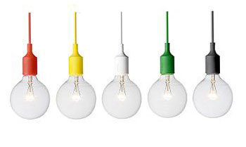 I love the swirly designs on the bowls with the swirls on the fabric on the chair (below) and the color and design of this tablecloth which is a design by Liro A. Ahokas for Marimekko, called Kimara.