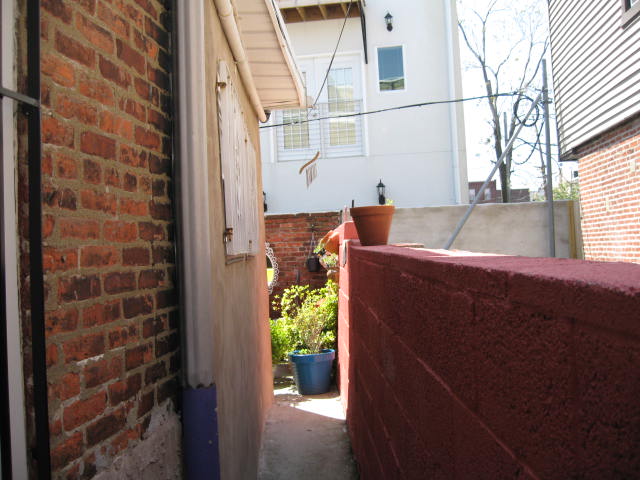 There is a shared alleyway to the left of this picture which is now defunct. Once I get someone to break up an area of the cement back there I plan on planting a Japaneese maple in the alleyway to shield the backyard from the house to the left of this picture.
