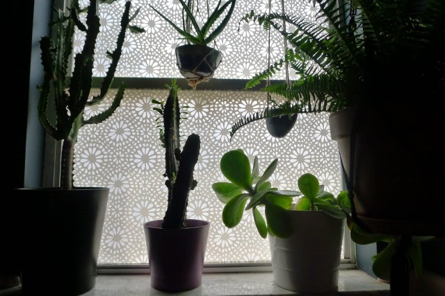 The window film made a big difference in the room. I had a hard time capturing the the way the light illuminates the design in the window.