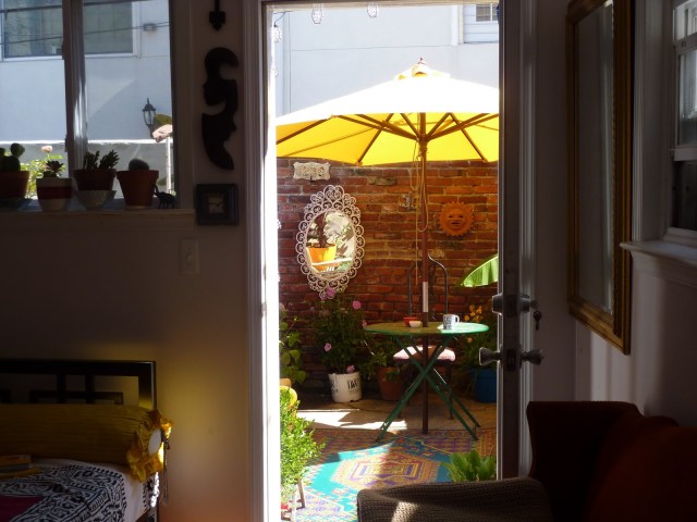 There is nothing more relaxing to me than sitting outside in our backyard and doing nothing! Well today was not that relaxing because I started to think about my backyard renovation. I don’t have any before pictures but the space back here was just awful. It was a tiny block of cement with pigeon droppings everwhere. First on my backyard To-Do-List is to prime and paint the window, shown in the picture below, yellow.