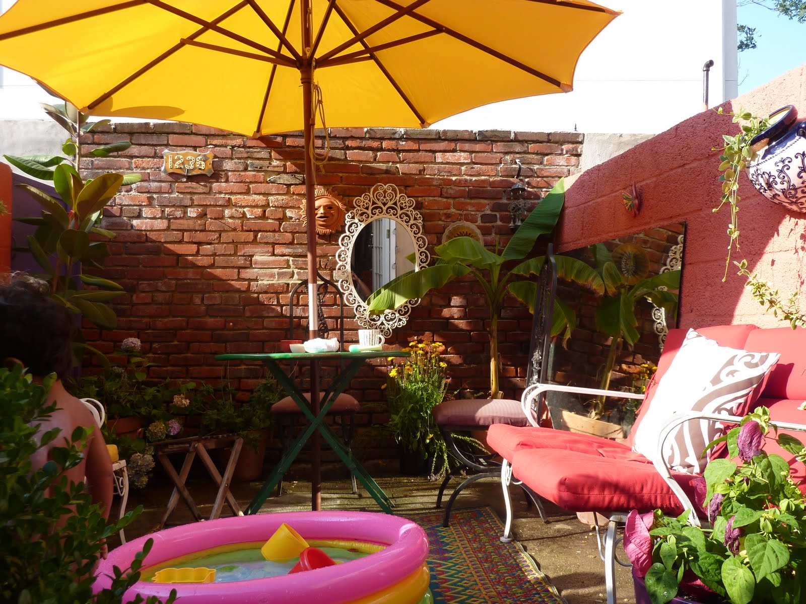 There is nothing more relaxing to me than sitting outside in our backyard and doing nothing! Well today was not that relaxing because I started to think about my backyard renovation. I don’t have any before pictures but the space back here was just awful. It was a tiny block of cement with pigeon droppings everwhere. First on my backyard To-Do-List is to prime and paint the window, shown in the picture below, yellow.