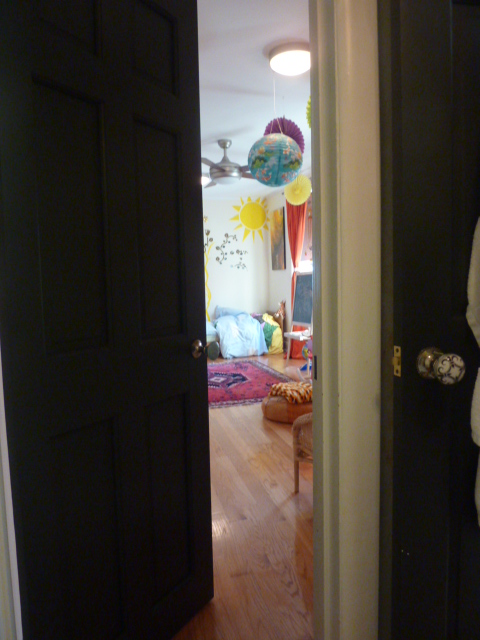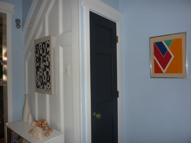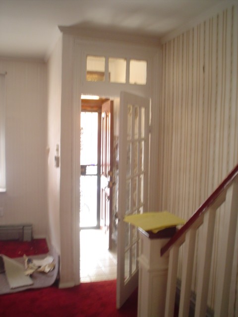 When we bought the house one of the first things that our contractor suggested was that we get rid of the vestibule. I am so glad that we didn’t. I love walking into the house and having a space to put my keys, hang my jacket and take off my shoes. The vestibule also has the added benefit of keeping out any cold drafts from entering the house. In the winter we shut the vestibule door which keeps out the cold air from the living room.