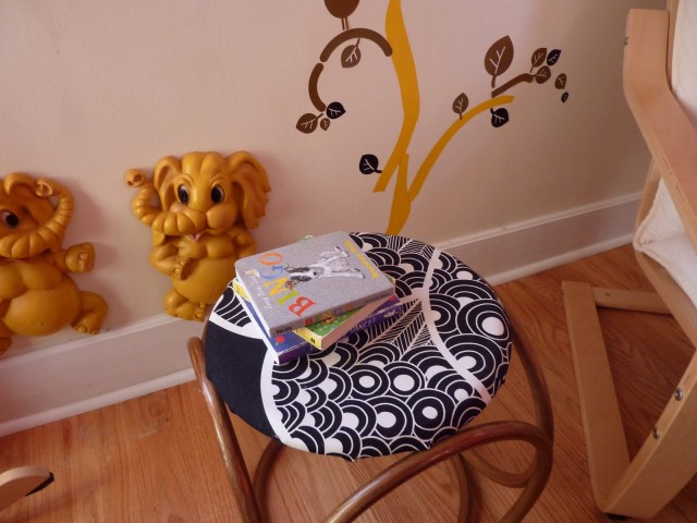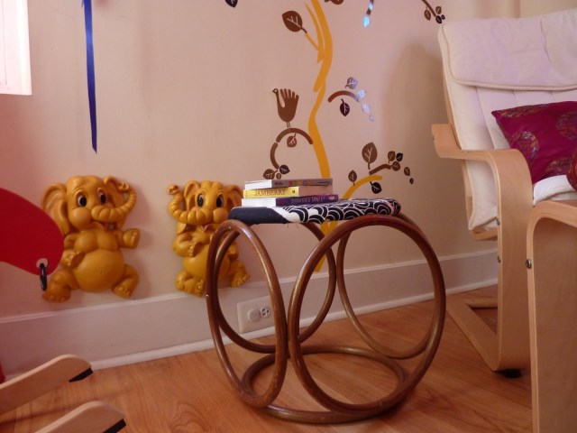 I recently found an Eames Molded Plywood Lounge Chair, on trash day abandoned on the side of the road. I drove by it, saw it, and called Scott who was still at home and asked him to pick it up ASAP. After I hung up the phone with Scott I realized that he was not the slightest bit moved by my shrieking over the phone that it was an original Eames chair! I decided that if I wanted that chair I would have to drive back, around the block, in the middle of rush hour, and get the chair (we live on a one way street in a maze of one way streets) . As I jumped out of the car, and ran towards the trash I couldn’t believe my luck at finding this chair. When I got close to it I realized that it was in amazing condition. The back piece was not attached to the back rest but it could easily be fixed. With my heart pounding in my chest I picked up the chair and ran towards our house and dropped off the chair in Scott’s arms. All this time (which felt like an eternity) I was double parked on our street, and there were a string of cars all honking their horns at me. Finding this chair made my whole month!
