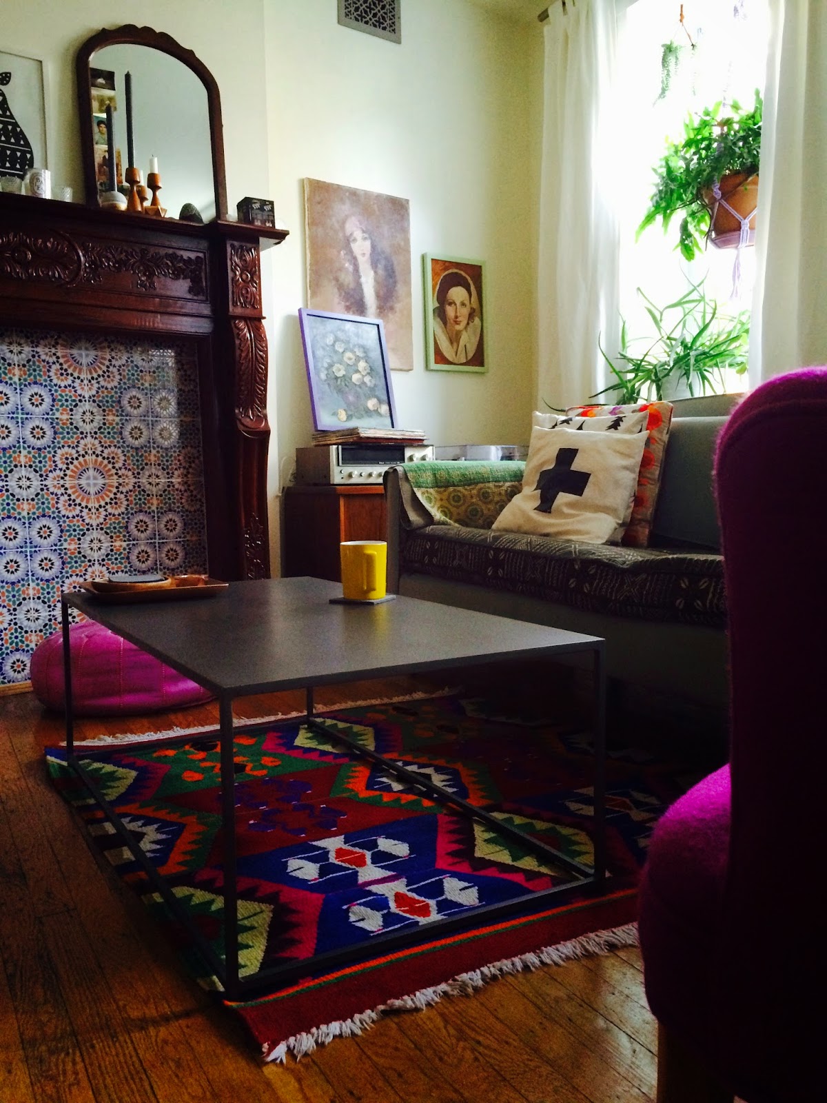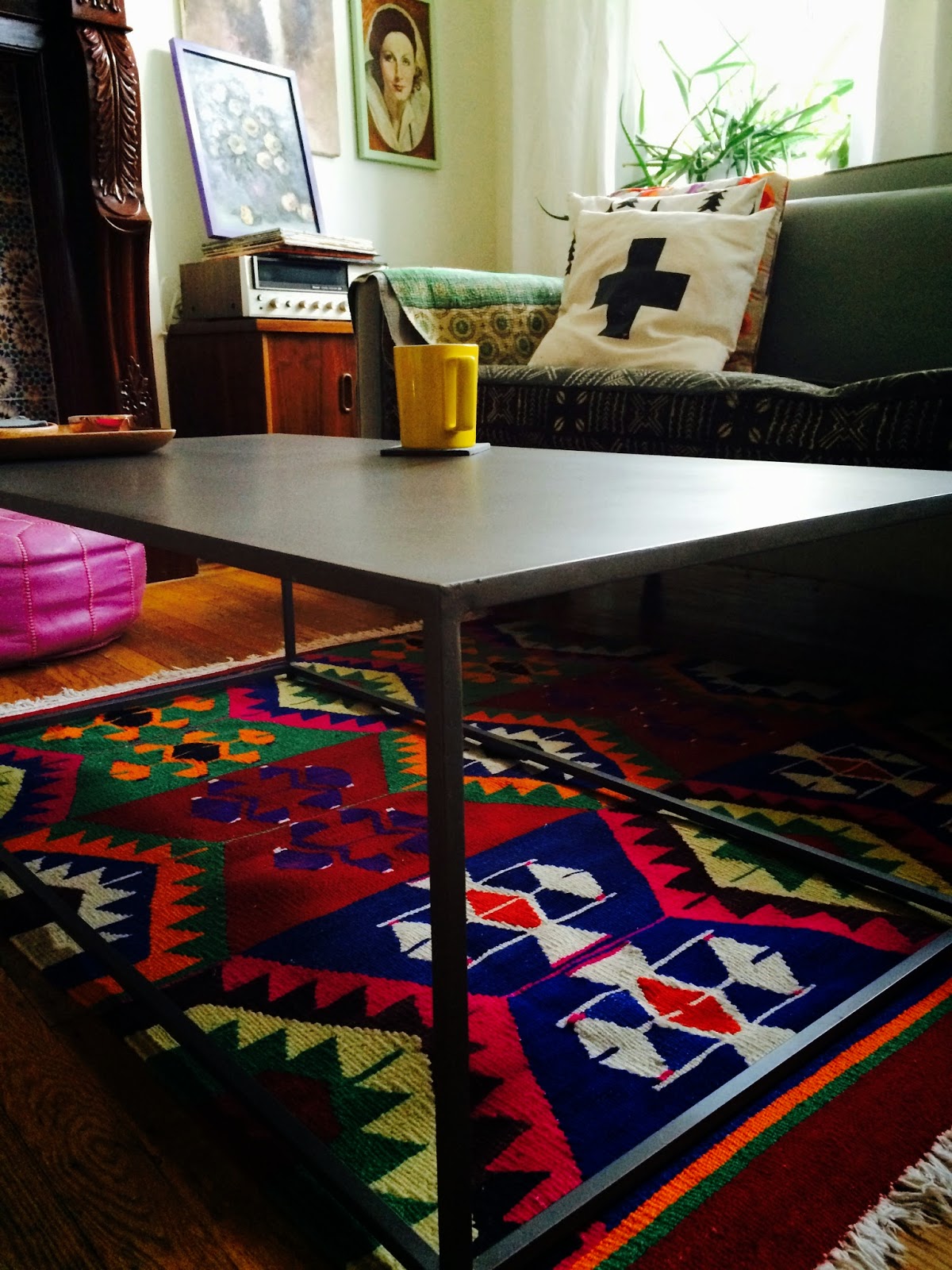 My obsession with kilim rugs began along time ago. Scott and I were browsing through an outdoor flea market in Monostoraki , in Athens, Greece. I spotted a bright green hand woven rug with geometric shapes and fell in love. The seller informed me that it was a kilim rug. I wanted to fold this beautiful rug into my suitcase and bring it back to Philly. Unfortunately the rug was too large (and heavy) and needed a good cleaning. Since we were planning on traveling to Paros the next day and we were travelling light I left this thing of beauty behind.